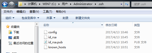 然后一路回车。这时你就会在用户下的.ssh目录里找到id_rsa和id_rsa.pub这两个文件