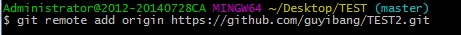 $ git remote add origin https://github.com/guyibang/TEST2.git
