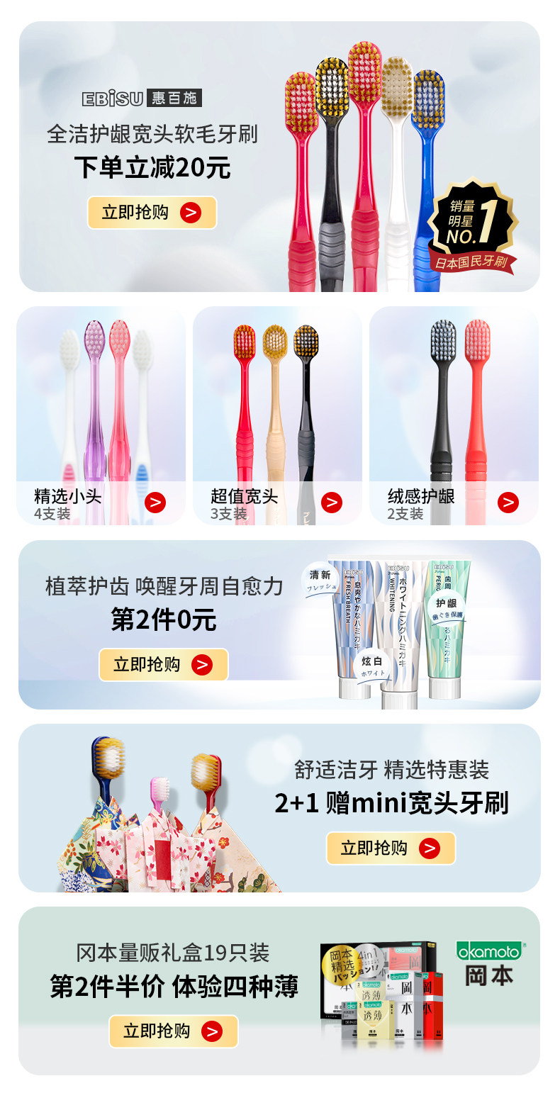 【拍2件】惠百施宽头软毛成人牙刷*2