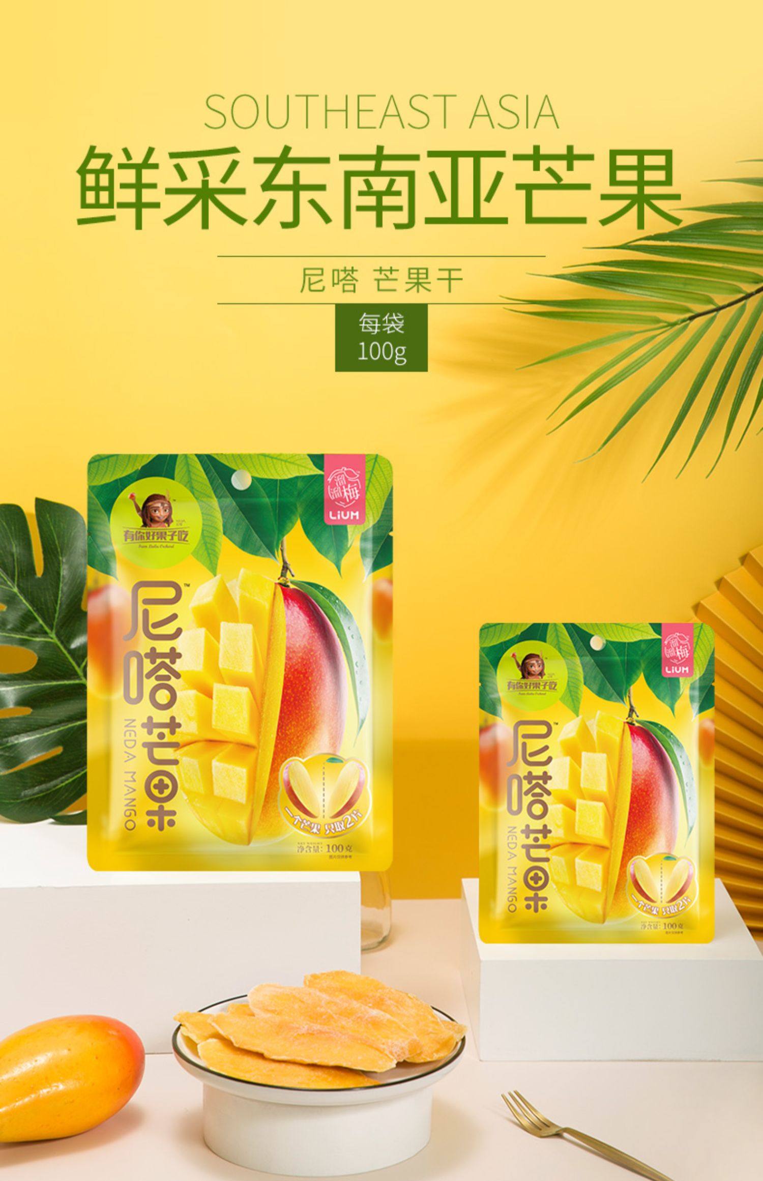 【溜溜梅】网红芒果干100g*3袋