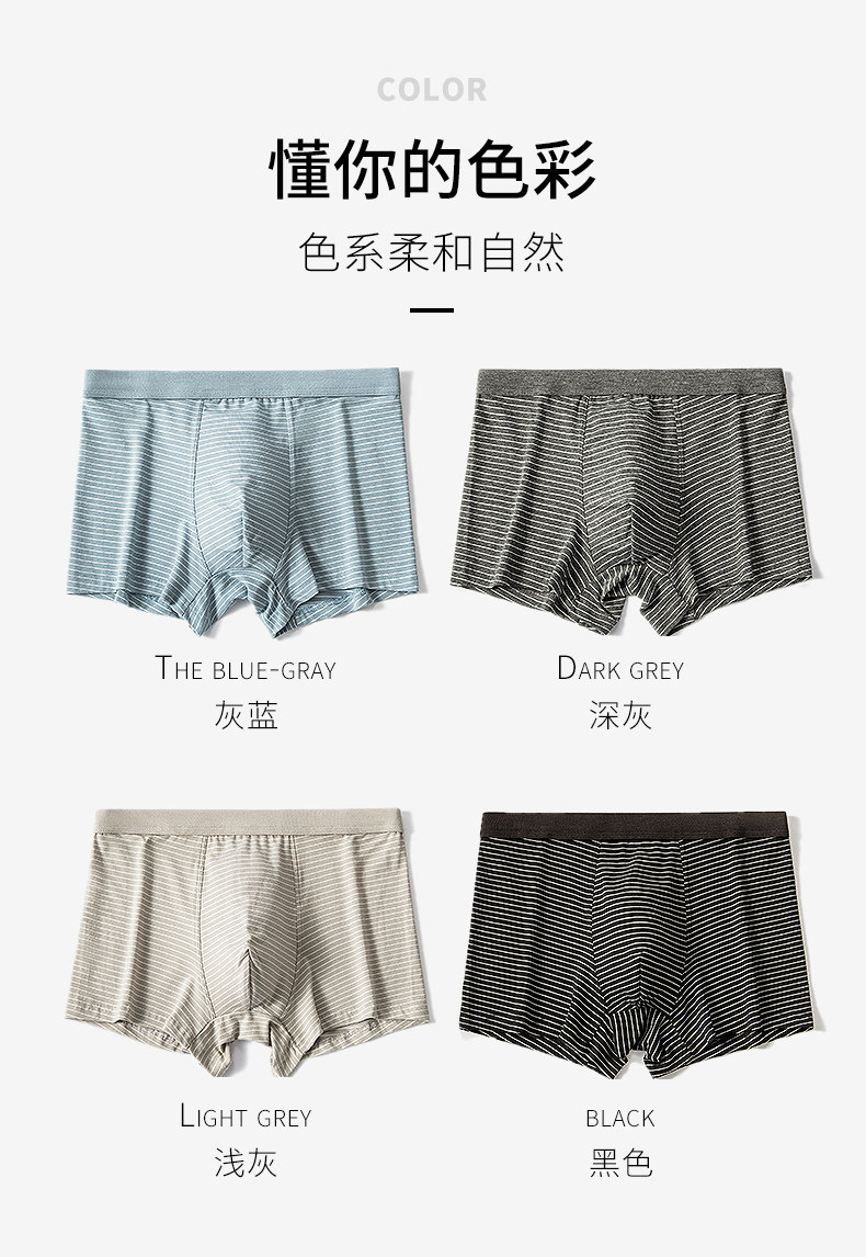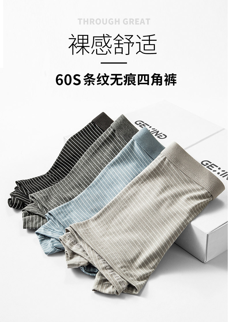 男士纯棉裆抗菌无痕冰丝平角短裤4条