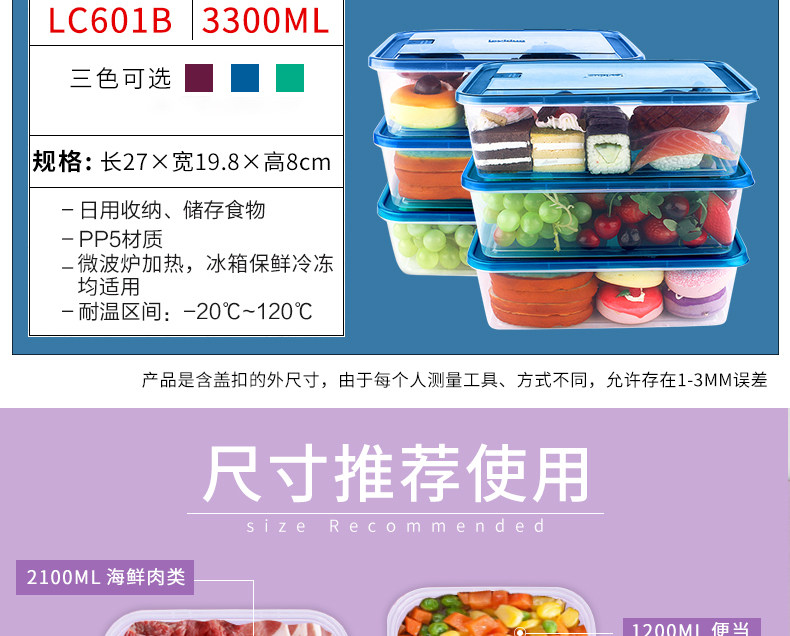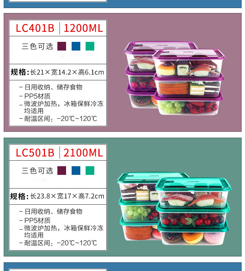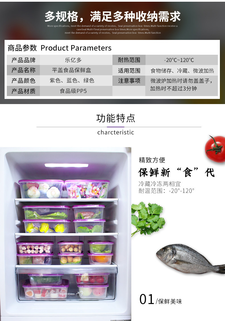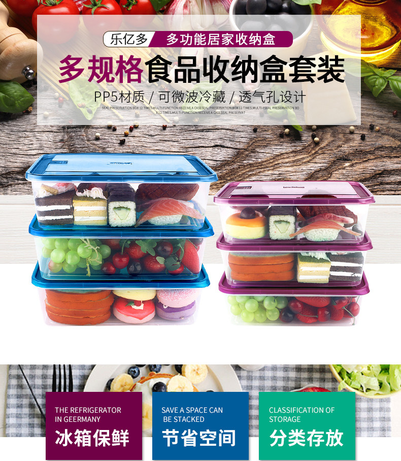 【乐亿多】保鲜盒冰箱用收纳盒6个装