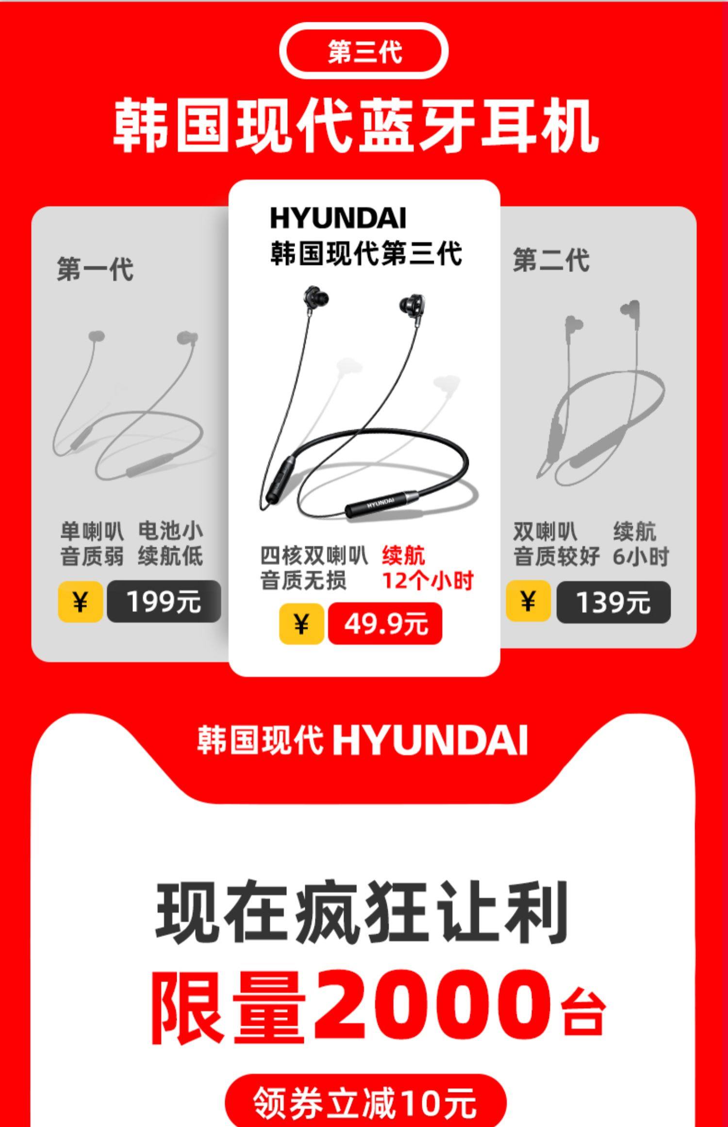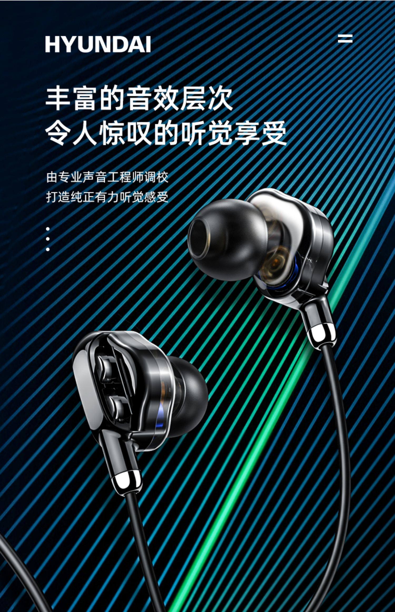 【四核双动圈】韩国现代、无线运动蓝牙耳机