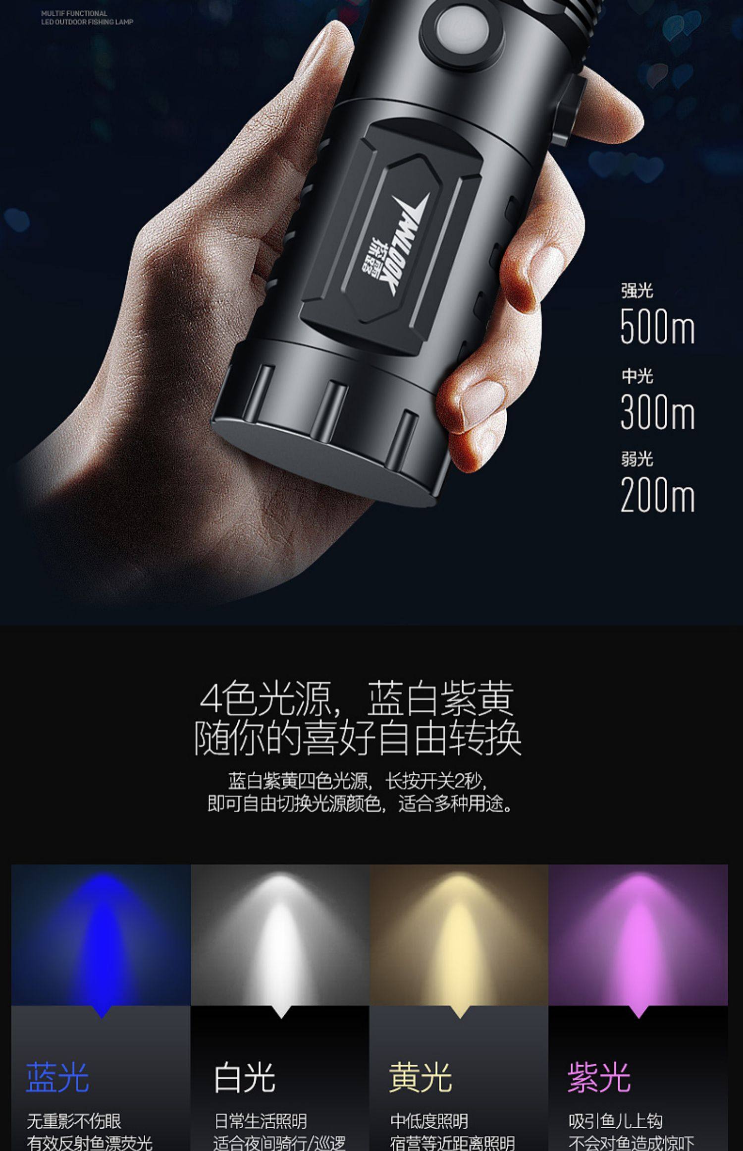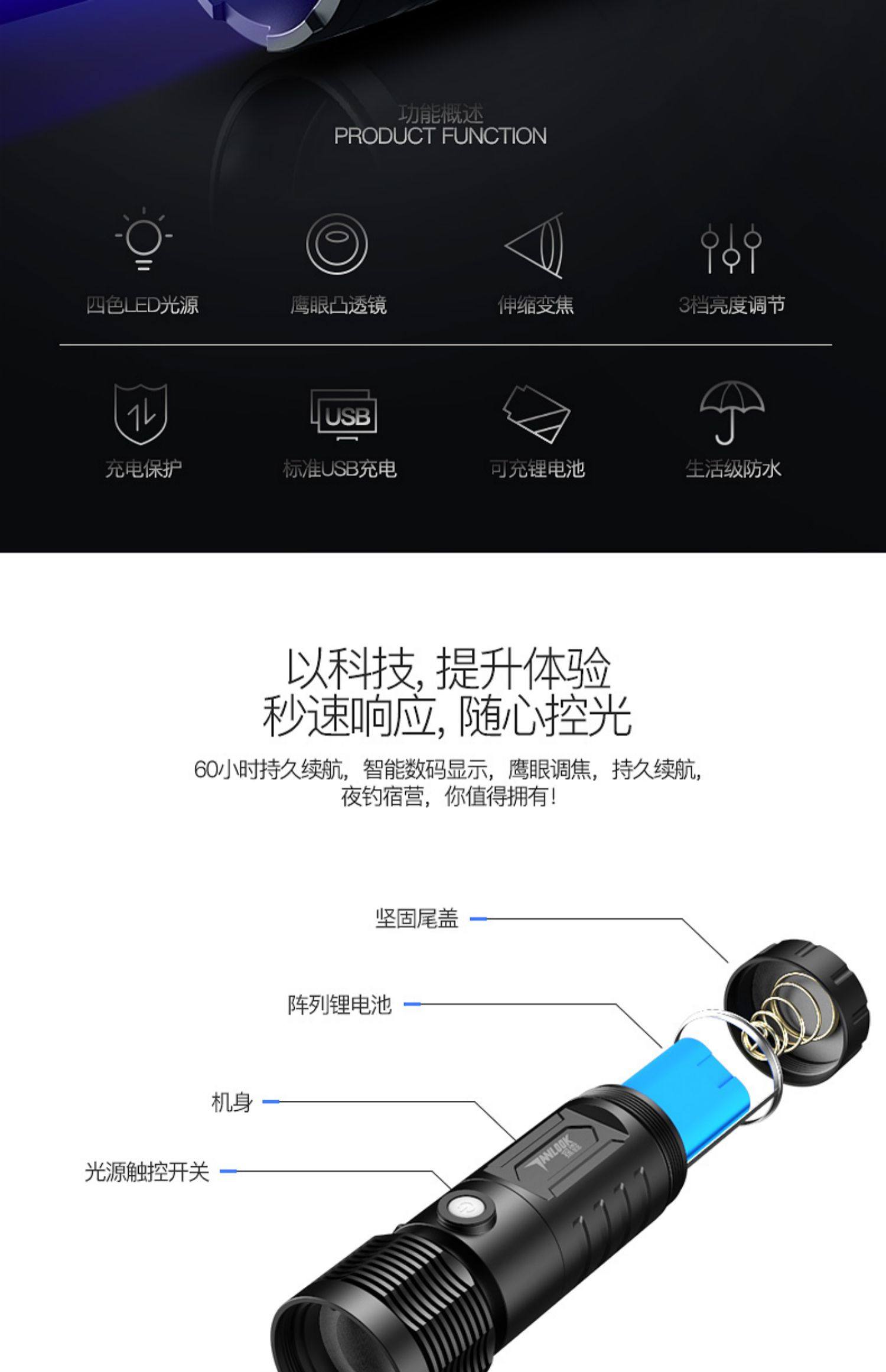 【探露】USB快充四光源手电筒