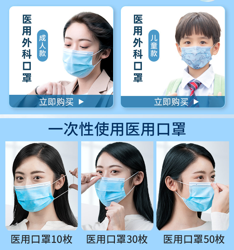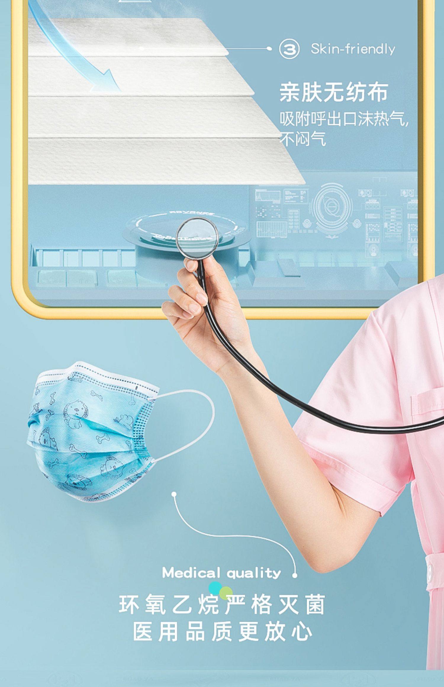 儿童卡通防护口罩一次性医用口罩50只