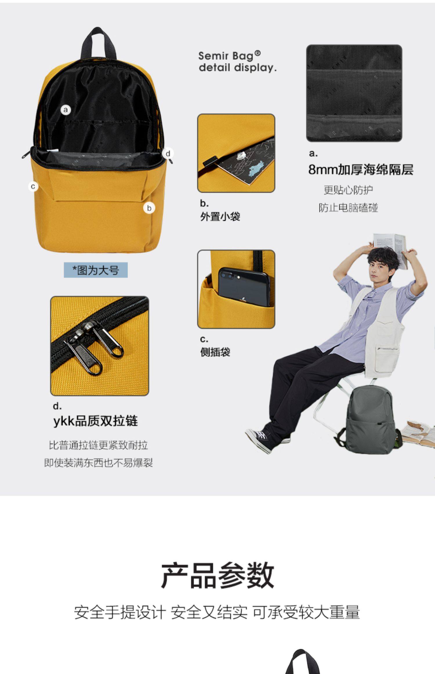 【森马旗舰店】简约时尚双肩包男女纯色书包