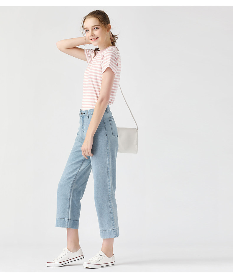 艾米恋 纯棉条纹短袖t恤女装夏季
