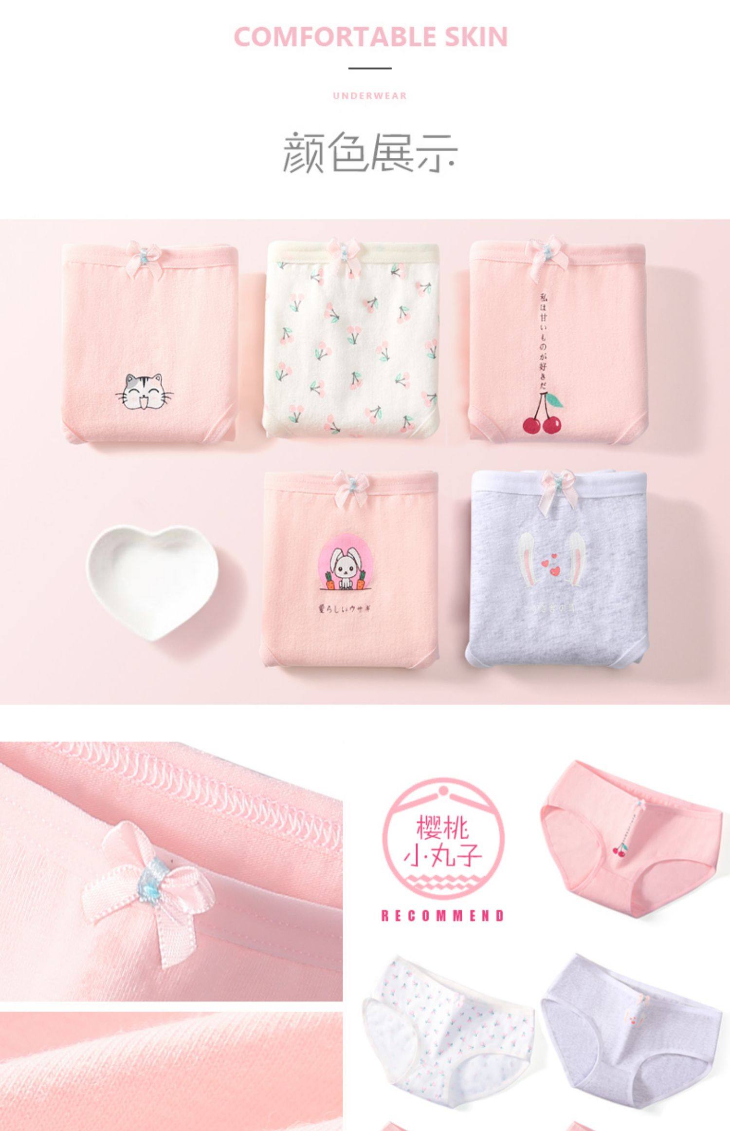 8条装【北极绒】全棉裆抗菌少女内裤