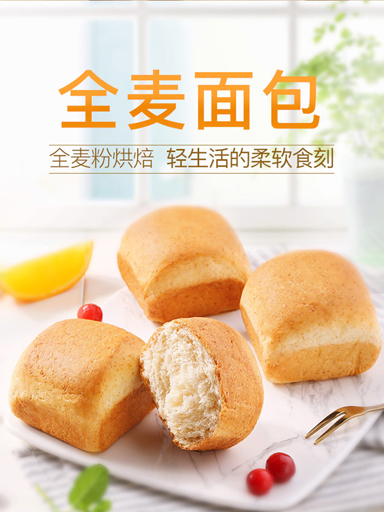 【拍2件】百草味全麦手撕面包1kg×2箱