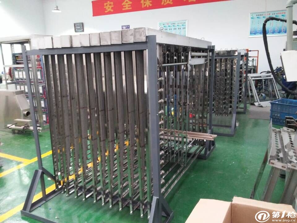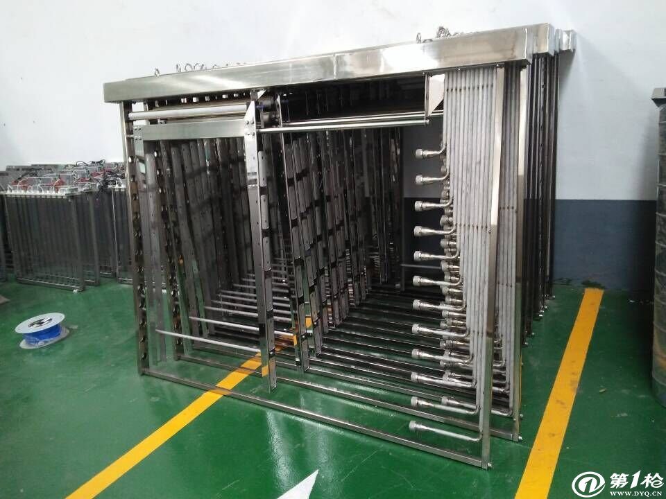 该设计优点:模块所用材质均为耐腐蚀的316L、304不锈钢,整个系统中灯管插座、供电插座及紫外灯电线均封闭在紫外灯模块组件内,不会暴露于污水和紫外光水中。整个模块支架为316、304不锈钢制造并安装在明渠的污水上方,每个模块单独设置,并无需紧固地悬挂在明渠内污水的上方,因此在更换灯管或石英套管时,每个模块能单独被吊起且不影响其他模块。